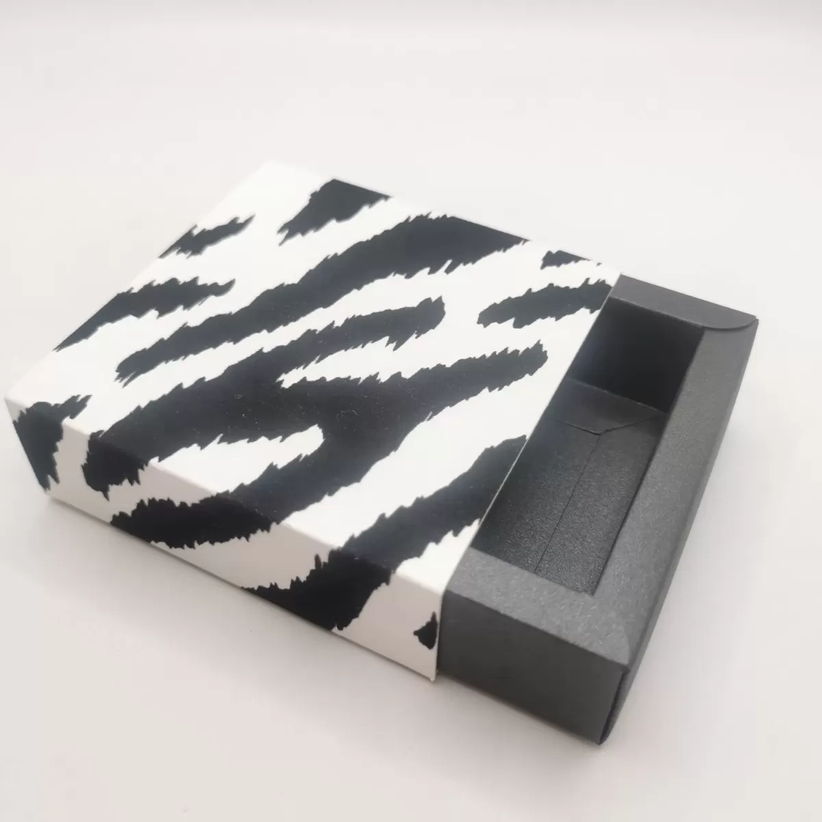 Esterno: fascia in petg semi trasparente (carta vellum) e fascia floccato animalier