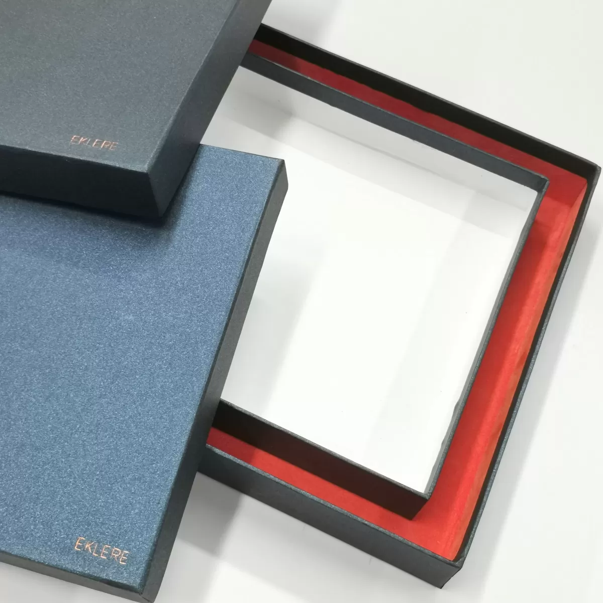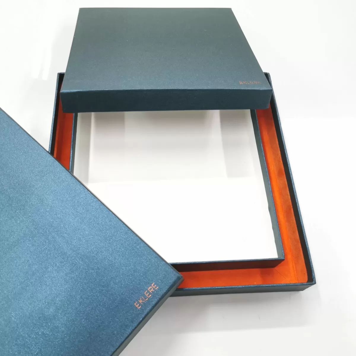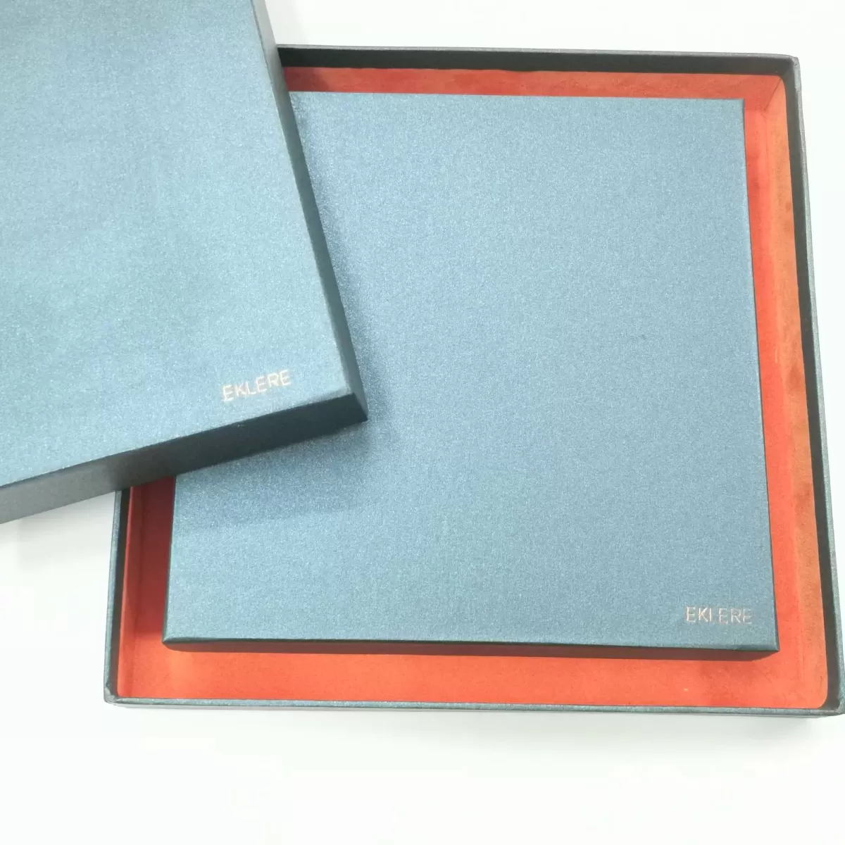 SCATOLA COMPOSTA DA DUE BOX : QUELLA INTERNA RIVESTITA IN ALKANTARA PREGIATO, ED ENTRAMBE RIVESTITE ALL'ESTERNO IN CARTA PERLATA