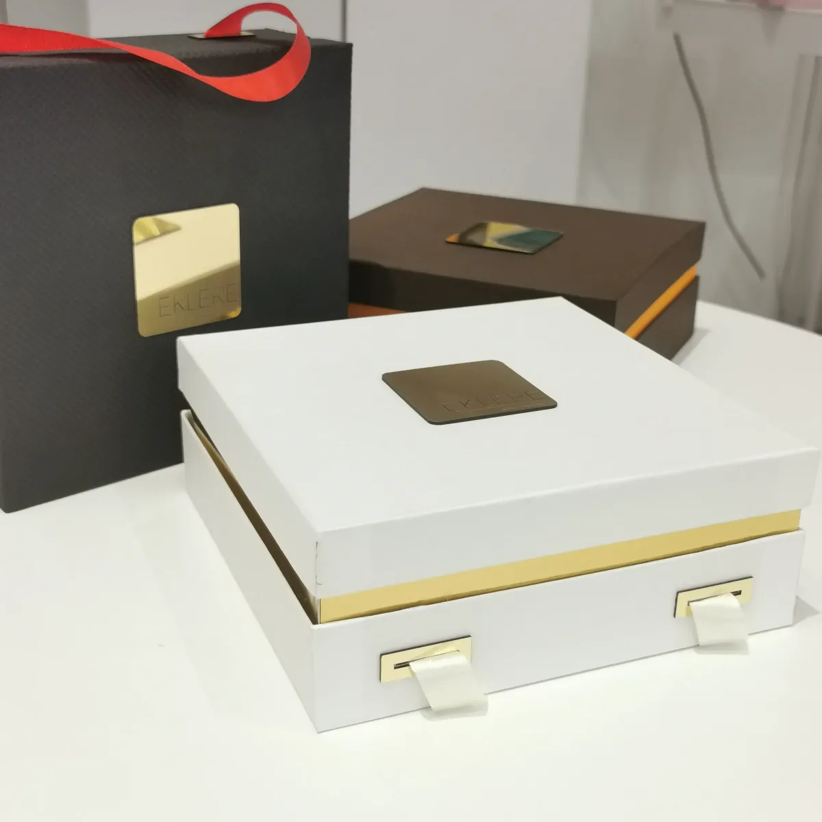SCATOLA LUXURY CIOCCOLATINI, BON BON, PRALINE, CON FIBBIE IN ORO SPECCHIO